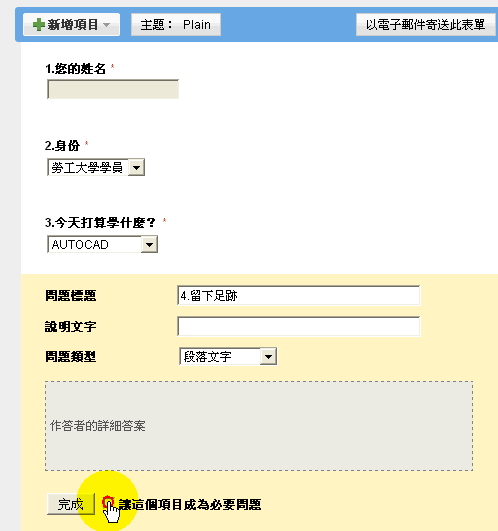 其後改為別的網頁表格,一樣試用。