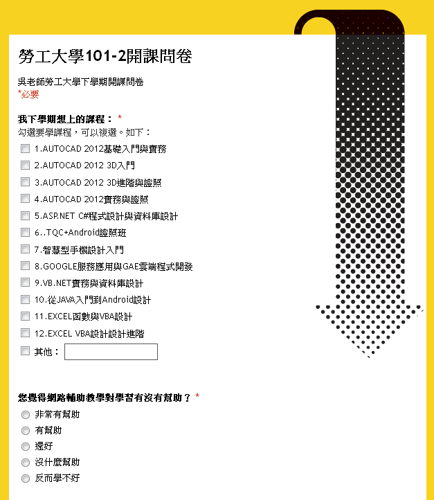 到VBA進階到資料庫的兩個不同單位課程,因學習對象不同課程也稍異: