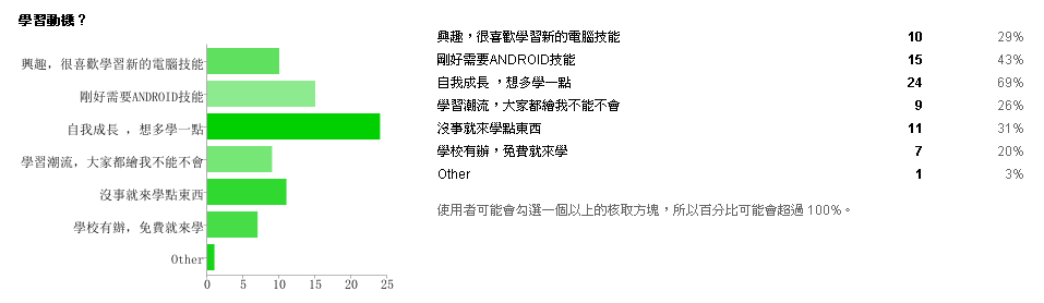 調查一下擁有 Android手機的老師,訝異居然沒幾個老師使用,