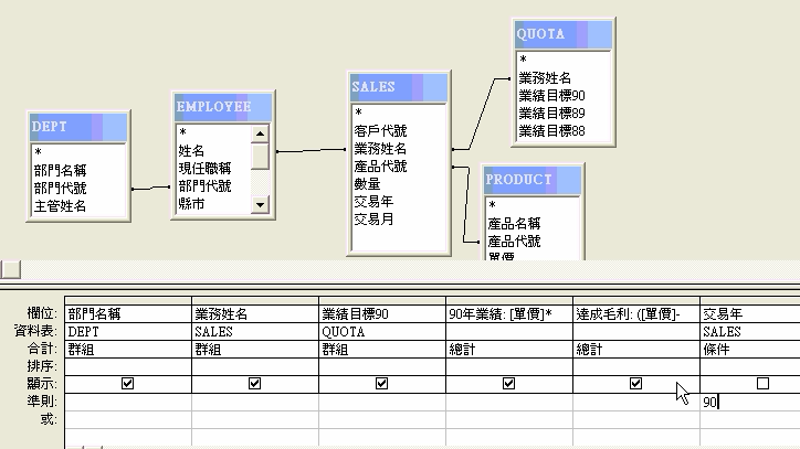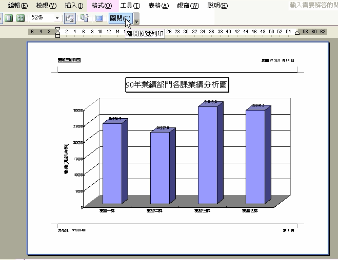範例:90年業務部門各課業績分析圖(題組三問題4)