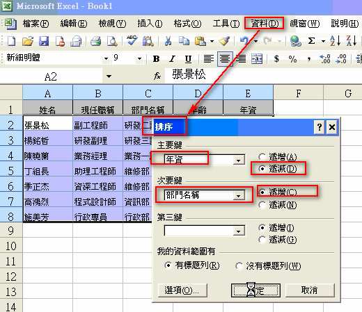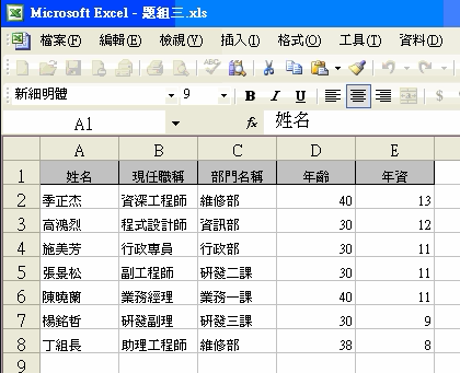 範例:題組三員工人事及業務部門業績報表.xlsx [下載]