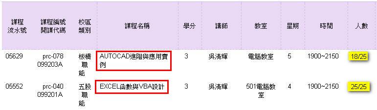 加上這學期的開班人數提高許多,沒有20人是無法開班的。