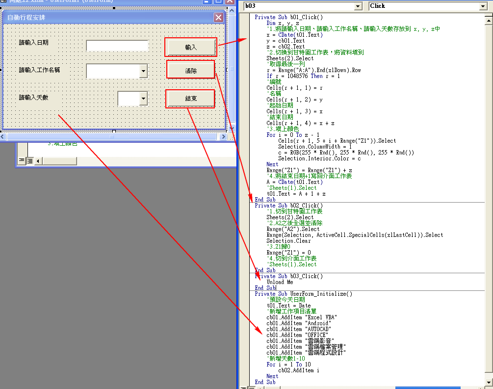 把範例22行程安排講完,並將之改成比較專業的表單界面,