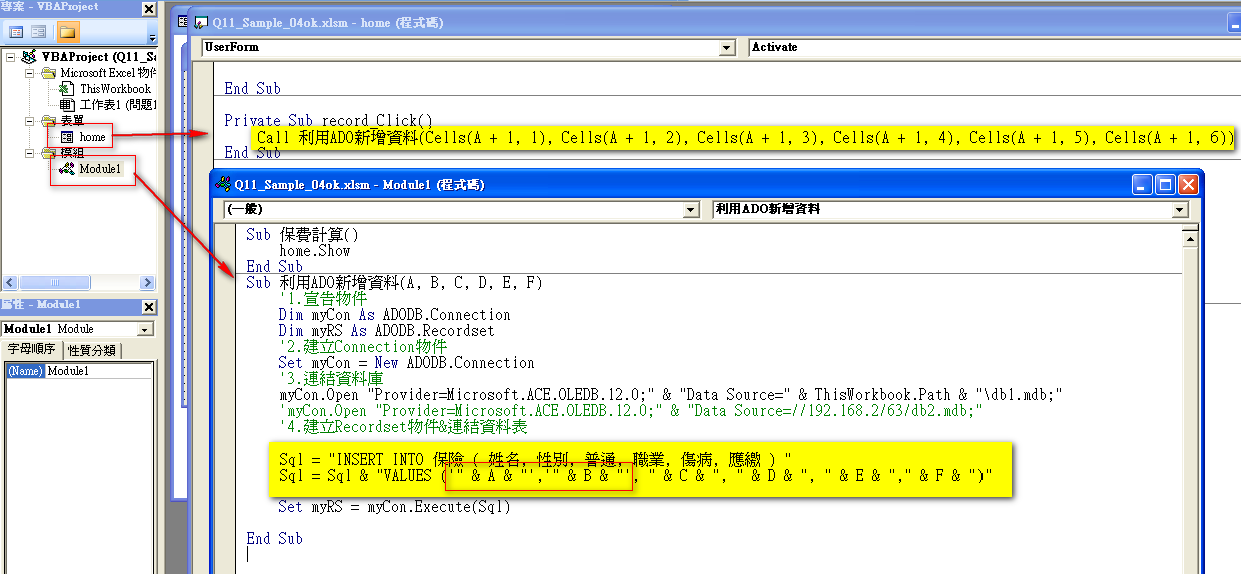 7.如何要EXCEL VBA中用ADO新增表單中的資料到資料庫中。