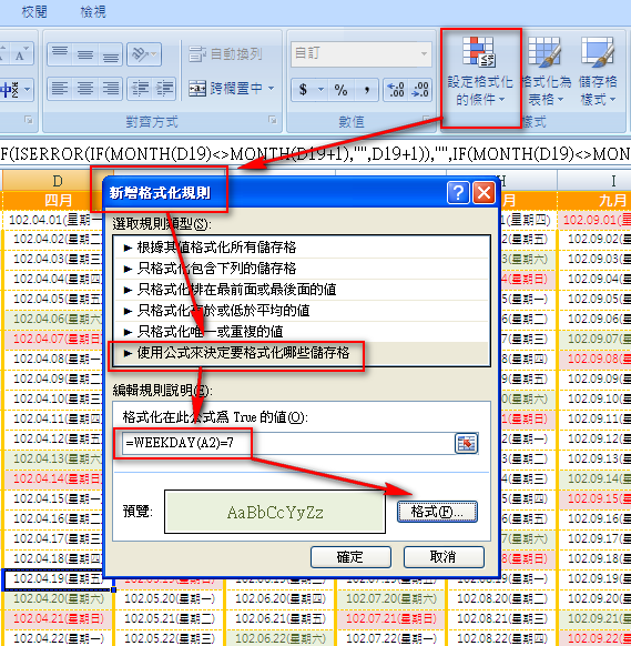 最後則是日期格式化,將六、日格式化成不同顏色。