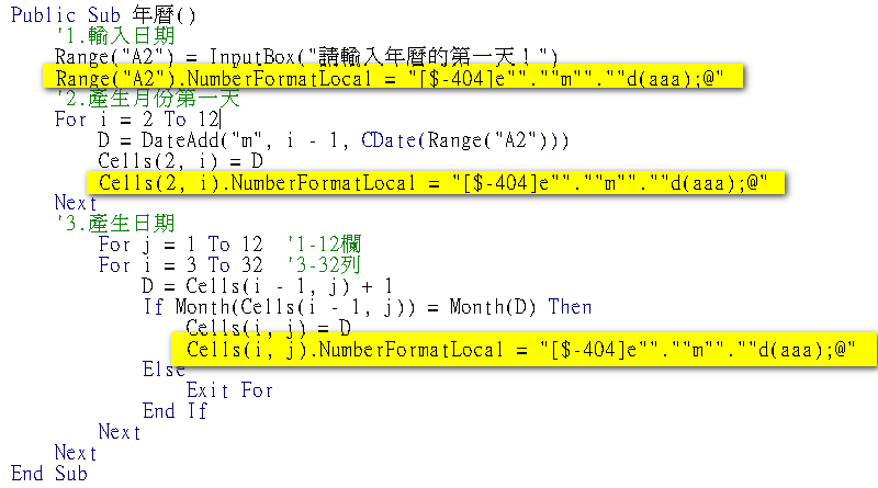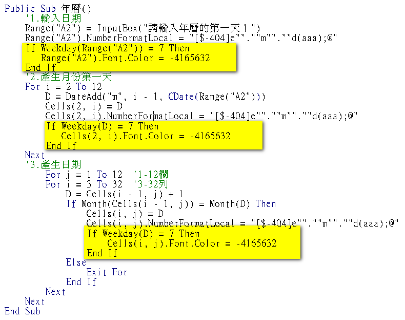 之後自動處生有格式化的年曆,以下就是這次上課的範例說明分享。