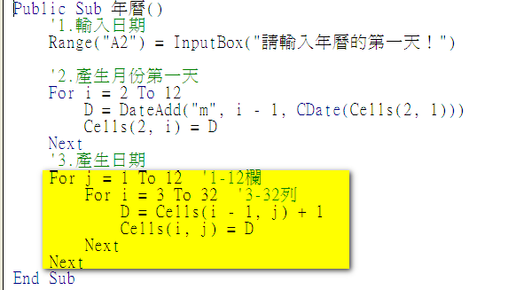 東吳EXCEL VBA與資料庫雲端設計(如何用VBA設計年曆)