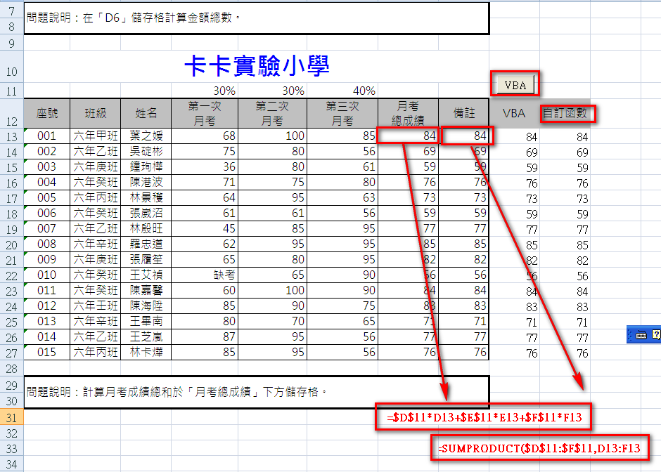 1.除了解說内建函數公式,並將之轉成自訂函數,把複雜的公式變簡單。