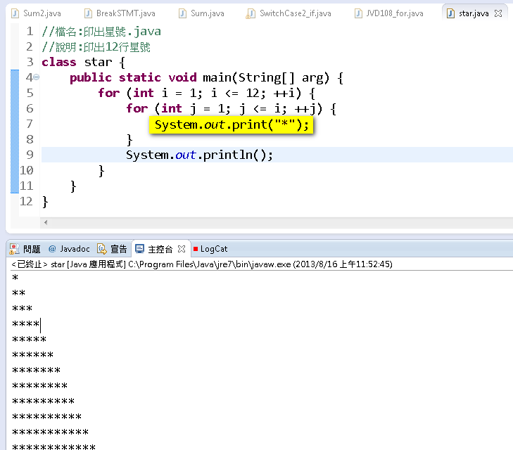 04_For巢狀結構範例說明(九九乘法表與印出星號).avi