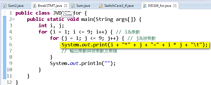 02_For巢狀結構(九九乘法表)