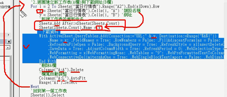 下載網頁上的那段程式是用錄製巨集而來的只是把它放在迴圈之中,