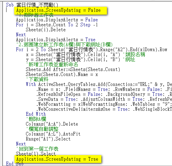 首先,要先學會如何如何自動下載YAHOO股市資料到EXCEL中[連結]