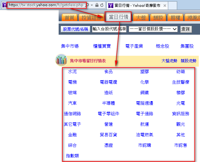 接下來要先準備好所需要的連結網址表格,欄位:類股與網址