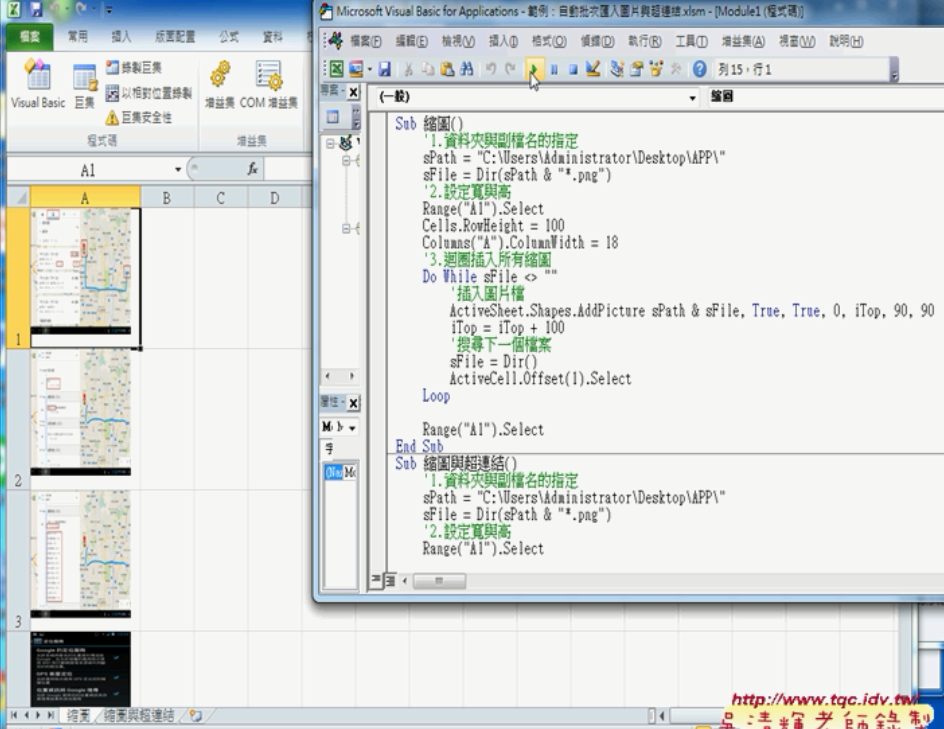 如何用EXCEL VBA自動批次匯入圖片與超連結