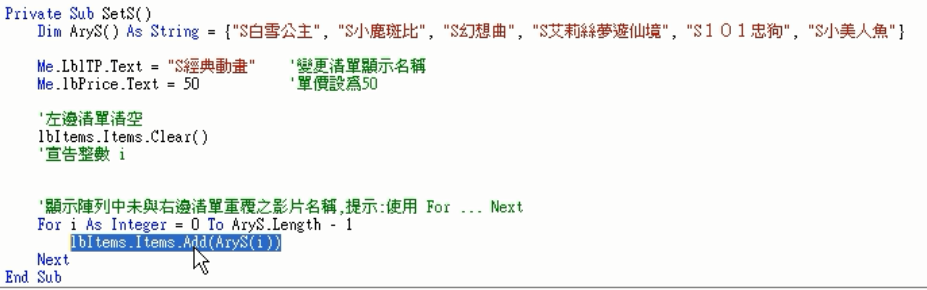 並開始撰寫左邊清單加到右邊程式碼與增加到右邊程式碼,