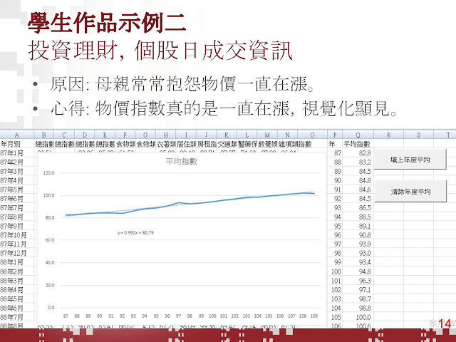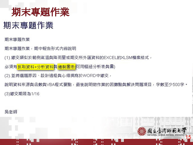2.期中專題有範圍,但許多學生都能加入自己的需求和想法,加上EXCEL容易上手,雖說需要撰寫VBA程式,但因為懂得錄製巨集與修改的方式,都能完成理想專題。